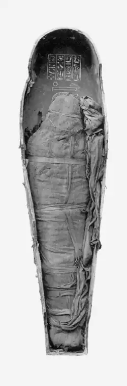 For the 18th dynasty, the mummy shows an unusually heavy use of subcutaneous stuffing to make the mummy look more lifelike.[62] The mummy has museum inventory number CG 61074.[62]