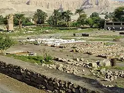 In 2021, excavations revealed a settlement near Amenhotep's mortuary temple, called the Dazzling Aten, believed to have been built by king[74] to house craftsmen and labourers working on royal projects at Thebes, along with its own bakery and cemetery.