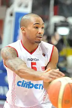The next summer, in August 2011, he moved to the French Pro A, joining ASVEL.[15] Despite a good start, including scoring 25 points in the EuroLeague qualifier against Gravelines,[16] Goss soon came into conflict with the club's head coach Pierre Vincent, who pulled him out of a game after 3 minutes, citing a lack of collective discipline.[17] After averaging 9.1 points and 2.5 assists, in 23 minutes per game in the French league,[18] with averages of 8.9 points and 2.3 assists in the same amount of playing time in the European second-tier level EuroCup,[19] Goss parted ways with ASVEL in March 2012, and rejoined Varese.[20]