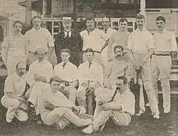 This tour was a very ambitious one for the Americans. They had last toured the British Isles in 1889. Though the results may have been less satisfactory than hoped for by promoters, the tour was arranged mainly for educational purposes and few of those on the American side expected to win many matches.[2] Previous tours had tended to involve amateur English sides with a relatively low level of competition. In 1897 a schedule was made including all of the top county cricket teams, the Oxford and Cambridge University teams, the Marylebone Cricket Club, and two other sides, though only a few of the counties thought it worthwhile to put their best elevens onto the field.[2] While it initially aroused some curiosity, many English fans lost interest until Bart King and the Philadelphians met the full Sussex team at Brighton on 17 June. In the first innings, King proved his batting worth on a fourth-wicket stand of 107 runs with John Lester.[3] He then took 7 wickets for 13 runs and the team dismissed Sussex for 46 in less than an hour.[4] In the second innings, King took 6 for 102 and helped the Philadelphians to a victory by 8 wickets.[5]