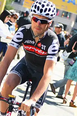 For the 2009 season Deignan rode with the Cervélo TestTeam. He raced the Giro d'Italia, achieving a top ten finish in one stage and featuring prominently in others, with his team winning 4 stages in total. On 17 September 2009 he achieved his first grand tour stage victory, in stage 18 of the Vuelta a España into Avila, after a 2-man battle with the Czech Roman Kreuziger of Liquigas. By finishing 10 minutes clear of the peloton he climbed to 9th in the general classification.[14] He became the first Irishman to win a stage on a Grand Tour since Stephen Roche's last-stage success at the Tour de France in 1992.[15][16] Deignan was selected to ride for Ireland in the 2009 World Elite Road Race Championship in Mendrisio, Switzerland (23–27 September) alongside Nicolas Roche and Dan Martin.[17] After his Vuelta performance, Deignan reached a personal high 2009 world ranking of 71st. Deignan was the best Irish finisher when placing 40th at the 2009 UCI Road World Championships – Men's road race in Mendrisio. He ended the 2009 season UCI ranked 75th, with 61 points,[18] which helped Ireland to 16th in the team rankings.