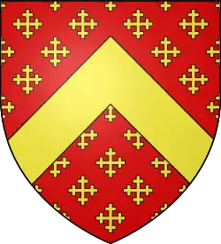 Coat of arms of Philip de Kyme, Lord of Kyme, Gules, crusily and a chevron Or.