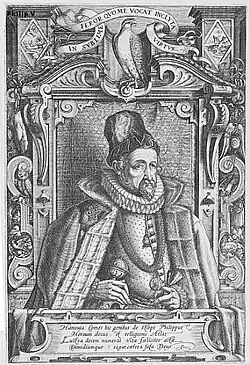 - ^ Hessisches Staatsarchiv Marburg, file 81 Government Hanau, document A 12,6f says it was on 23 November 1566 between 3 and 4 o'clock. Perhaps he was born in the night of 22 to 23 November 1566. He was baptized on 11 December 1566 in Bouxwiller