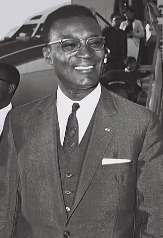 A teacher by training, Yacé was among the founders of a trade union for instructors; he also served as the secretary general of the country's lone political party, the PDCI,[1] for 15 years before the post was abolished. He was president of the Legislative Assembly and of the National Assembly,[2] and from 1980 headed the High Court. He then served as the president of the economic and social council up until his death in 1998. He also served as mayor of Jacqueville, a deputy for the same constituency, a senator, and the spiritual leader of the "3A" (the alladian, aïzi, and akouri). He was the so-called "dauphin" of Félix Houphouët-Boigny,[3] with whom he collaborated closely for much of his career, and it was widely expected that he would be Houphouët-Boigny's successor upon the former's retirement. But the elder statesman became wary of the influence Yacé was wielding, and in 1980 effectively disowned him, ending his political career.[4]