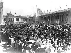 The band's first overseas performance came just three years after its formation when it accompanied the Philippine Scouts to the Louisiana Purchase Exposition of 1904 in St. Louis, Missouri. A 4-company battalion of these Scouts, with many Filipino NCOs and enlisted among its ranks, had been sent to the fair to drill the manual of arms for President Theodore Roosevelt, who requested that the Constabulary Band play one of his favorite marches, The Garryowen, which it obliged as the president "clapped heartily."[5] John Philip Sousa, who was in attendance at the fair, was among those who heard the Philippine Constabulary Band play and remarked, "I am simply amazed. I have rarely heard such playing."[6]