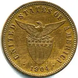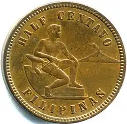 The Philippine half-centavo coin (½¢), a denomination of Philippine currency, was issued when the Philippines was under US administration. It bears the names of both countries: Filipinas (the Spanish name of the Philippines) and the United States of America.[1]