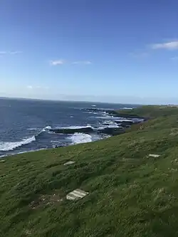 The southern and western coasts of the island lie within the Phillip Island Important Bird Area, so identified by BirdLife International because of its importance in supporting significant populations of little penguins, short-tailed shearwaters and Pacific gulls.[26] As of 2023 the island's population of little penguins is estimated at around 40,000, with the birds living on the Summerland Estate on the Summerland Peninsula (which was bought by the Victorian Government in the 1980s for use as a wildlife reserve). After many penguins died in a 2019 heatwave, native plants such as bower spinach were planted around penguin boxes to insulate them. Grass fires, largely due to poor practices since settlement, and projected to occur more frequently as a result of climate change, threaten the penguins' habitat, and it has been observed that they do not move away from fire. A project is under way to replace more flammable introduced plants with less flammable endemic species, creating natural firebreaks.[25] The island's penguins have also been threatened by an invasive fox population. After the foxes were mostly eradicated in 2017, the absence of predators led to a rise in the invasive rabbit population, which in turn exacerbated erosion and threatened native orchid species. Conservationists have used phosphine gas to fumigate the island's extensive rabbit warrens, which can destabilise houses.[27]