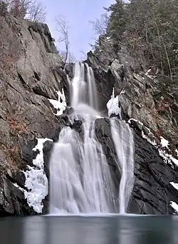 The High Falls Conservation Area, a 47-acre (19 ha) property in the village, with access from the town of Claverack, is owned and managed by the Columbia Land Conservancy. High Falls, Columbia County's highest waterfall, cascades 150 feet (46 m) before culminating in a large pool. The water flows southwest, then northwest by Claverack Creek, until eventually reaching the Hudson River.