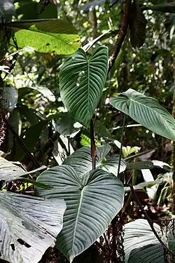 Philodendron grandipes is a species of plant in the genus Philodendron native to Central and South America from Nicaragua to Ecuador.[2][3] It has green cordate foliage and is commonly terrestrial in habit.[4] Philodendron grandipes is a member of Philodendron section Philodendron, subsect. Philodendron ser. Fibrosa. It is most closely related to Philodendron jodavisianum, which shares D-shaped petioles despite different growth habits.[4]