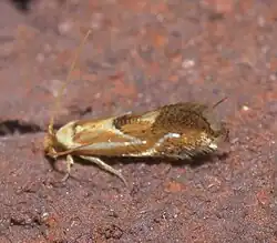 - ^ a b Davis, Donald; Sohn, Jae-Cheon; Lopez-Vaamonde, Carlos (2015). "Revision of the genus Philonome Chambers and its proposed reassignment to the family Tineidae (Lepidoptera, Tineoidea)". ZooKeys (494): 69–106. Bibcode:2015ZooK..494...69S. doi:10.3897/zookeys.494.8748. PMC 4400378. PMID 25901115.