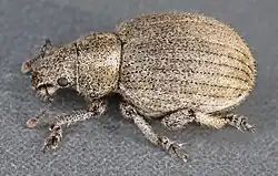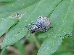 Philopedon plagiatum (sometimes Philopedon plagiatus), the marram weevil, is a species of broad-nosed weevil in the beetle family Curculionidae.[1][2][3][4] It originates in Western Europe,[5][6] with a distribution which includes Portugal, Spain, France, Ireland, Great Britain, Belgium, the Netherlands, Germany, Denmark, Norway, Sweden, Finland, Estonia, Latvia, Lithuania, Poland, Czech Republic, Slovakia, Russia, Ukraine, Hungary, Greece, Switzerland and Italy.[7] It has been introduced into North America, first recorded in 1940.[8] It is now established in the Maritime Region of Canada and the northeastern United States.[1]
