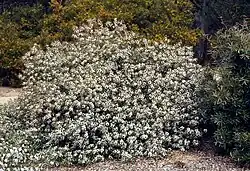 Subspecies acuta grows on rocky sandstone hills from Lockhart to near Cobar.[15][16] Subspecies brevipedunculata is found coastal areas to mountain summits between Sassafras and Moruya in south-eastern New South Wales.[17][18][19] Subspecies euroensis grows among granite boulders on the Strathbogie Ranges near Euroa in north-eastern Victoria.[20][21] Subspecies myoporoides grows in forest and heathland, usually near watercourses, mostly along the Great Dividing Range from the northern border of New South Wales to near Healesville in Victoria.[22][23][24] Subspecies petraea is only known from rocky areas on Mount Stewart, west of Gelantipy in north-eastern Victoria.[9][25]