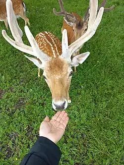 The Phoenix Park (Irish: Páirc an Fhionnuisce[1]) is a large public urban park in Dublin, Ireland, lying 2–4 kilometres (1.2–2.5 mi) west of the city centre, north of the River Liffey. Its 11 kilometres (6.8 mi) perimeter wall encloses 707 hectares (1,750 acres) of recreational space.[2][3][4] It includes large areas of grassland and tree-lined avenues, and since the 17th century has been home to a herd of wild fallow deer.[5] The Irish Government has lobbied UNESCO to have the park designated as a World Heritage Site.[6]