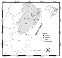 1. ^ Cristina Arzabe, Débora Silvano (2004). "Physalaemus cicada". IUCN Red List of Threatened Species. 2004: e.T57246A11608322. doi:10.2305/IUCN.UK.2004.RLTS.T57246A11608322.en. Retrieved 15 November 2021.