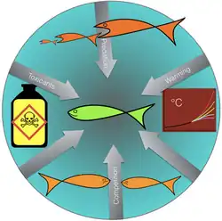 Phytoplankton microbial community structures and diversity are dictated by environmental conditions.[8] Environmental and anthropogenic stressors such as elevated temperatures and changes in nutrient availability drive changes in the phycosphere, which consequently impacts ecosystem dynamics and biogeochemical cycling.[6][13]