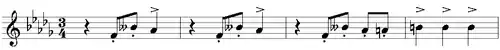 The first movement, Allegro ma non troppo e maestoso, makes extensive use of the three-note theme of F, B