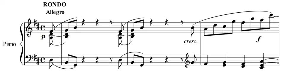 The fourth movement is in rondo form (A-B-A-C-A-D-A-Coda).[2]