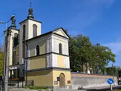 During the invasion of Poland, which started World War II, Germany raided the town four times in September 1939.[6] A dozen or so people were killed, and many buildings were destroyed, however, thanks to firefighters and civil defense the damage was limited.[6] The town was flooded by refugees fleeing the western regions of Poland after the German invasion.[3]