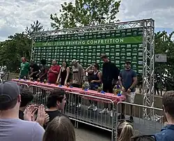 Since its founding in 2015, every Picklesburgh festival has featured a pickle juice drinking competition as its headline event.[24] In the competition, contestants race to drink a quart-sized jar of pickle juice without regurgitating, spilling, or leaving any juice in the jar.[10][24] The winner is dubbed the "Mayor of Picklesburgh" and receives a belt and a $500 cash prize, as of 2023.[10][25]