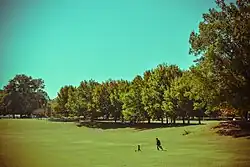 The park's first bathhouse was opened in 1911.[24] Swimming in the lake was allowed until 1973, when the city opened a pool in the park.[24] The same year the first bathhouse was opened, the Peace Monument, a Confederate monument, was dedicated in the park, near the 14th Street gate.[25]