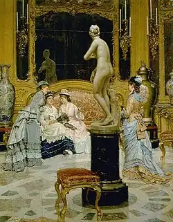 One of Gilardi's notable paintings is the 1877 piece A Visit to the Gallery, which the University of Michigan Museum of Art acquired in 1895.[2] The painting depicts a group of young women looking at a nude classical female statue,[6] possibly the Venus de Medici at the Uffizi Gallery in Florence.[2] Molly Peacock's poem "Girl and Friends View Naked Goddess" is directly inspired by this painting.[7][6]