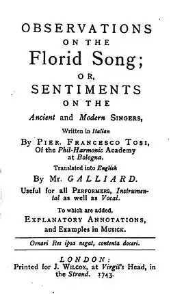 Opinioni de' cantori antichi, e moderni... [Observations on the Florid Song]