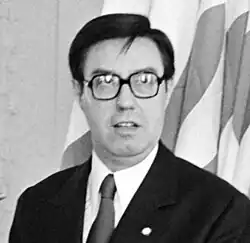 He attempted to run in the 1969 French presidential election on this platform, seeking to stand as a nationalist and anti-Zionist candidate,[20] but his candidacy was rejected by the Constitutional Council on a technical basis. It has been argued that there was a fear any judgement in Sidos' favour would have been considered a vindication of his collaborationist background in wider society.[21] Le Soleil, organ of L'Œuvre Française, dismissed the Jewish origin of some members in the council, namely Gaston Palewski and René Cassin, as the reason for their refusal.[22][15] In 1973, Sidos was the only candidate for L'Œuvre in the legislative election.[15] Sidos was said to have met António Salazar for a short encounter in the 1960s, king Faisal of Saudi Arabia for a one-hour meeting on 28 April 1971 in Riyadh, as well as Juan Perón on 22 October of the following year in Madrid, and former SS colonel Otto Skorzeny in the same city. According to Sidos, Perón declared to him that "Paris [had] been the world capital of subversion since 1789."[5]
