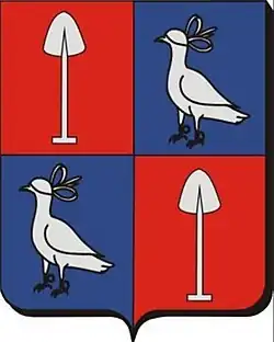- heart shield shows the three silver rhombuses on red (originally from the family Van Woerdern van Vliet) of the High Lordship Zuid-Polsbroek