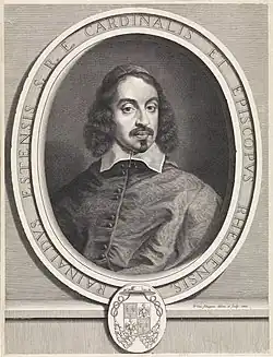 He left about 119 prints, mainly portraits of famous individuals of his day such as Cardinal Rinaldo d' Este, Mazarin and King Louis XIV of France.[3] Some of these were made after his own designs such as the Portrait of Cardinal Rinaldo d' Este.[4] Most of them are after paintings by other artists. He also made reproductive prints of the history paintings of other artists an example of which is the St Sebastian after Anthony van Dyck.[5]