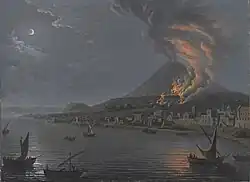 Like his Giacinto Gigante in the next generation, and appealing to British tastes, the exotic volcanic eruptions of Vesuvius were a popular subject for the artist. He was likely a pupil of Jacob Philipp Hackert and the precursors of the School of Posillipo.[2]