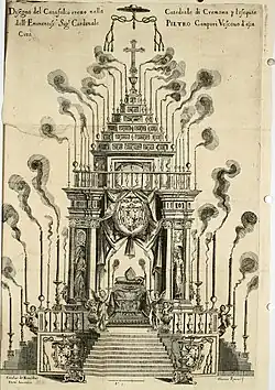Borghese had promoted Campori as a candidate for pope in both the 1621 papal conclave following Paul V's death and the 1623 papal conclave.[4] In 1621, Campori received support from the cardinals created by Paul V and was an acceptable choice to the Habsburgs. He was opposed by the cardinals from Venice, who had been ordered to vote against him, and the French ambassador attempted to undermine his election. Additionally, Pietro Aldobrandini, the nephew of Pope Clement VIII, opposed the election of any creation of Paul V, and was carried into the conclave on a litter despite being sick.[5] Borghese wanted to have Campori elected by acclamation on the first night of the conclave, but the ambassador of Louis XIII of France had a letter excluding Campori from election to the papacy, and waited for cardinals opposed to Campori to arrive before leaving a vote so as to not have to formally exclude him. When the initial scrutiny did not elect Campori, Borghese did not attempt to promote him further, hoping that he would eventually be elected if the conclave deadlocked.[6]