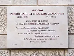 - ^ a b "Pietro Garinei, 87, Theatrical Voice of Rome, Is Dead". The New York Times. 10 May 2006. ISSN 0362-4331. Retrieved 15 November 2021.
