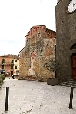 The Pieve di San Verano is a Roman Catholic, Romanesque-style, formerly-rural parish church now located in on Piazza Popolo #1 in the historic center of Peccioli, province of Pisa, region of Tuscany, Italy. The church is dedicated to Veranus of Cavaillon.