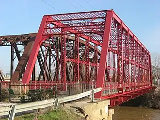 ![]() The Ohio Street Bridge over Pigeon Creek where it empties into the Ohio River at Evansville, Indiana | |