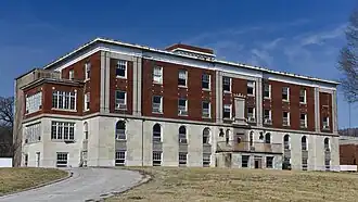 Pike County Hospital, also known as the Smith-Barr Manor, is a historic hospital building located at Louisiana, Pike County, Missouri. It was built in 1927–1928, and is a four-story, rectangular, Classical Revival style red brick and stone building. It has a flat roof with a two-story square red brick penthouse. It features a main entrance with decorative stone surround and cartouche, and additional terra cotta and stone ornamentation. It was converted to a nursing home in 1975.[2]: 6