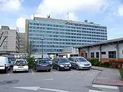 The main part of the hospital consists of a ten-storey building. It has twenty wards and has a busy maternity unit. Just north of the building there is a helicopter landing pad, used by the Lincolnshire & Nottinghamshire Air Ambulance.[60]