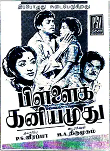 Pillai Kaniyamudhu is a 1958 Indian Tamil-language drama film directed by M. A. Thirumugam. The film stars S. S. Rajendran and E. V. Saroja. It was released on 30 May 1958.[1]