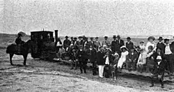 In 1913 a group of Belgian entrepreneurs inaugurated Ostende, a village in the coast built on a land they had bought to the Guerrero family. To go to Ostende, passengers went by train to Juancho, then being transported by horse-drawn carriages to "Colonia Tokio" where they took a narrow-gauge railway (Decauville) to Ostende.[5] On economic grounds, the coming of the train helped the zone to increase its production. Apart from cattle, producers commercialised apples and firewood, for which some small branches were built. One of those branches reached the point where the intersection of RP 11 and RP 74 is placed today, very close to the entrance to Pinamar. Nevertheless, most of those branches would be lifted in the 1940s.[1]