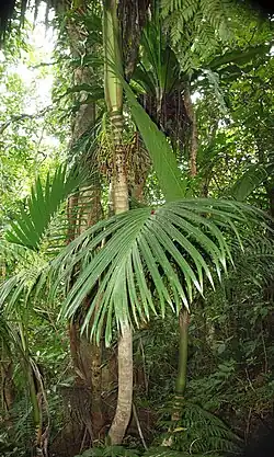 Pinanga tashiroi is a species of palm tree in the family Arecaceae. It is a small tree, up to 5 m (16 ft) tall, swollen at base.[2][3] It is a critically endangered species.