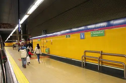 Pinar del Rey [piˈnaɾ ðel ˈrej] is a station on Line 8 of the Madrid Metro, serving the Pinar del Rey ("King's Pine Grove") barrio. It is located in fare Zone A.[1]