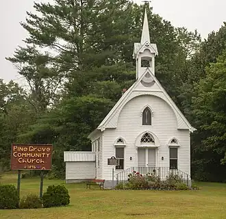 Pine Grove Community Church is a historic non-denominational, Christian chapel located at Pine Grove in Lewis County, New York. It was built in 1895 and is a two-story, wood-frame building three bays in width and five bays deep. It features a projecting two storybell tower attached to the center of the main block.[2]