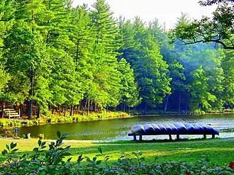 Subsequently, the Philadelphia Jewish Welfare Board purchased the camp.[10] Pinemere Camp was officially established in 1942 by the Jewish Welfare Board (which subsequently became the Jewish Community Center Association (JCCA)) to provide a resident camp experience for Jewish children in the Mid-Atlantic region of the United States.[1][2][3][10][11] It focused especially on providing a camp experience to children from smaller communities that did not have a synagogue.[1] At that point, it became co-ed.[10] In the late 1940s, John Bernheimer, a prominent Philadelphia attorney, served on its board of directors.[13] American interior designer and former daytime television host Nate Berkus's grandparents met at the camp, where his grandfather was the water sports director.[14]
