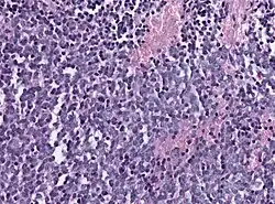 Pineoblastoma is a malignant tumor of the pineal gland. A pineoblastoma is a supratentorial midline primitive neuroectodermal tumor.[2] Pineoblastoma can present at any age, but is most common in young children. They account for 0.001% of all primary CNS neoplasms.[3]
