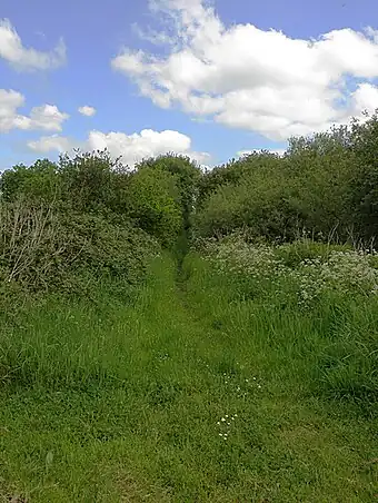 The railway was originally a freight only line,[5] built on the route of an old canal with tight curves and low bridge clearance and prone to flooding, but stations were established due to pressure from the public. The freight service continued for coal traffic until 1996 by which time the last of the local collieries had closed down.[6] A public house,'The Plough', stood nearby.[7]
