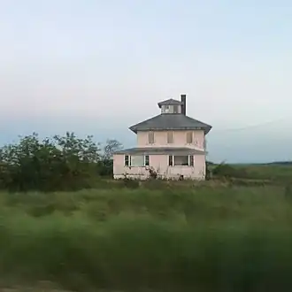 The Pink House was an uninhabited historic house and popular photography and painting subject in Newbury, Massachusetts, United States.[3] The house was built in 1925 and was privately owned until it was sold to Parker River National Wildlife Refuge for $375,000 in 2011.[4][5] The house was considered by many to be a local icon and was the subject of a grassroots campaign to buy back the property from the refuge to preserve the house.[6] In March 2025, after a decade of debate and legal challenges, the United States Fish and Wildlife Service demolished the house with intentions to restore the property to a wildlife habitat with partial public access.