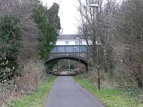 The disused track bed is now a cycle and footpath, forming part of the City of Edinburgh Council's Quiet Route 9.[2] The platforms and ticket office of the former station remain in place.[3]