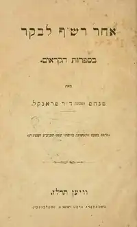 {{cite book}}: ISBN / Date incompatibility (help)CS1 maint: location missing publisher (link) Piyyuṭim of Eleazar ha-Ḳalir. - Aḥar reshef le-vaḳer. Vienna: G. Brög & P. Smolenskin. 1886. A criticism of Simḥah Pinsker's Liḳuṭe Ḳadmoniyot, first published in Ha-Shaḥar (1876–1877).