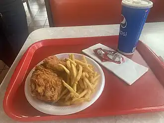 The Pioneer Chicken Take Out Corporation, doing business as Pioneer Chicken, is an American fried chicken restaurant chain which was founded in Echo Park, Los Angeles[1] in 1961 by H. R. Kaufman. During the 1970s, several locations operated in Honolulu on the island of Oahu, Hawaii. When Kaufman sold the chain in 1987, there were 270 restaurants operated by 220 franchisees.[2][3] In 1993, Pioneer Chicken was taken over by AFC Enterprises, the parent company of Popeyes. Almost all Pioneer Chicken locations were then converted to Popeyes.[4] The franchisees of two locations resisted the change, retaining the Pioneer Chicken branding: Los Angeles and Bell Gardens, California.[5]
