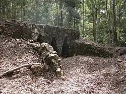 The Pipers Creek lime kilns are located within Kumbatine National Park (formerly Maria River State Forest) approximately 12 km south of Kempsey and west of the Pacific Highway. They are only accessible via fire trails and then on foot. The sites are generally isolated with bushes, grasses, small trees and other undergrowth encroaching on them. Although the kilns themselves are clearly visible due to recent work and maintenance, associated worksites and building footings are now generally overgrown and almost invisible to the casual observer.[1]