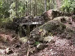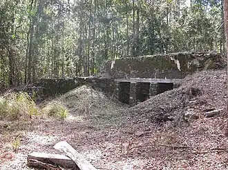 Secondary sources, on the basis of this evidence, date the construction of the limekilns from the early 1830s. Lime was undoubtedly scarce, so it may be that no time was lost in exploiting a valuable resource. Ralfe, as well as Sullivan, had noted this shortage. In April 1832 Charles Farrell, a publican and the proprietor of the Settlers' Arms, in Horton Street, Port Macquarie had asked Ralfe to survey the western bank of Limeburners Creek, north of the town.[12] In a letter to the Surveyor General, Ralfe commented that this area had "hitherto been used by the Government for the purpose of burning the shells there found into lime". He added that he did not "consider it of sufficient importance to reserve for that purpose".[13] This seems to indicate that this area was no longer used for lime burning. More extensive research is needed, however, to ascertain exactly when the Camden Haven deposits were exhausted.[1]